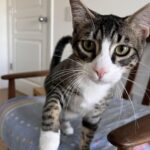 Emerson is an energetic, curious big boy that is always on the prowl for adventure. Playtime is the highlight of his day everyday — if he’s not chasing after his favorite feather toy, you’ll find him wresting or exploring with his sisters. When the fun is over, he’s ready to become a purr machine, snuggling right next to you and showing off his purrfect chonky tabby tummy.