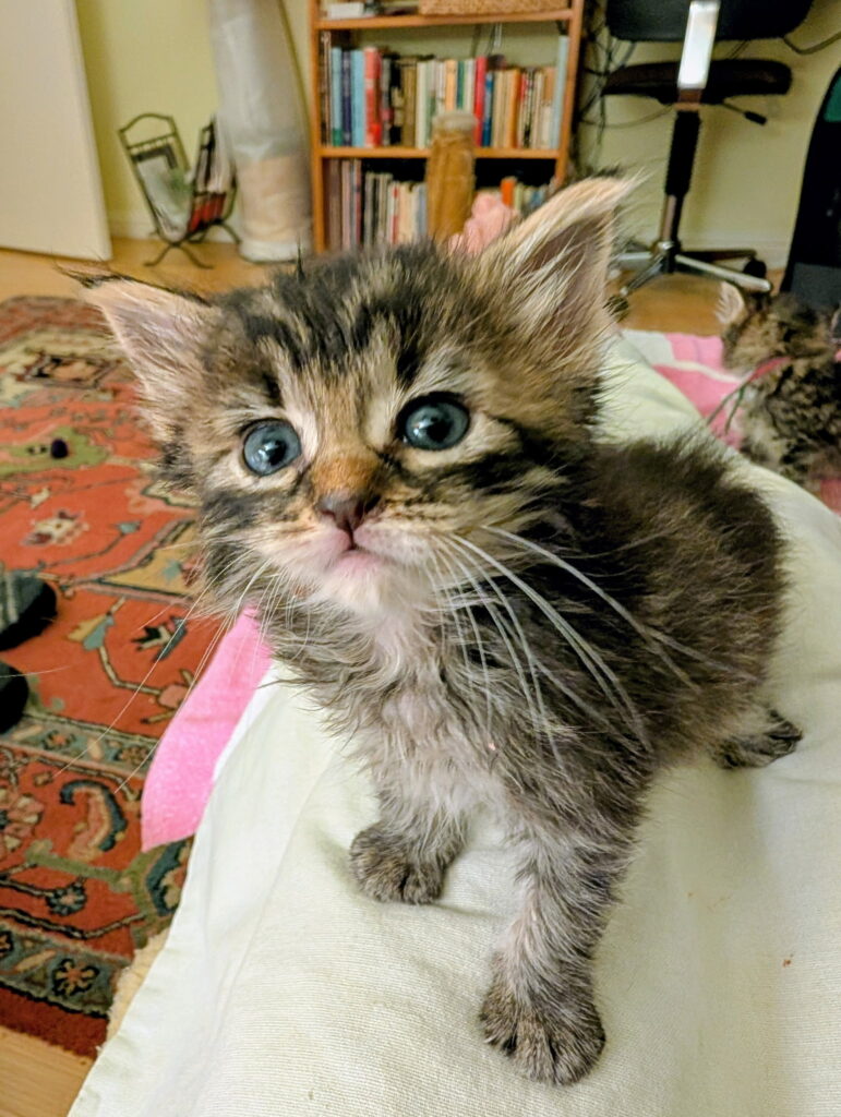 Young kittens must go home in pairs, or to a home with another cat. Infrequently we will make exceptions.