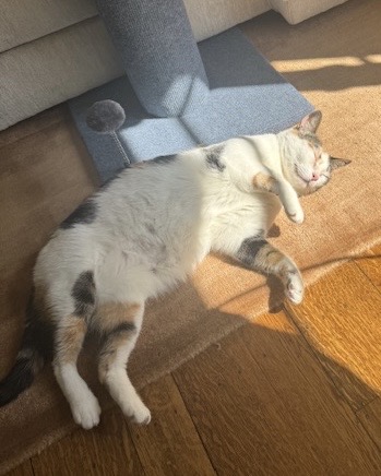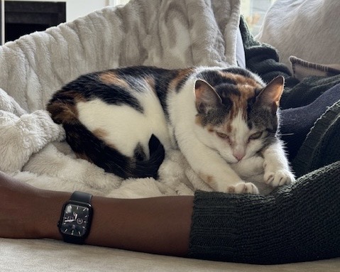 Manuka is a curious, spirited, and vocal cat who loves being the center of attention and thrives on novelty – whether it’s a new box, chasing the laser pointer, or exploring something unexpected. She’s clever, playful, and always looking for ways to be part of the action.