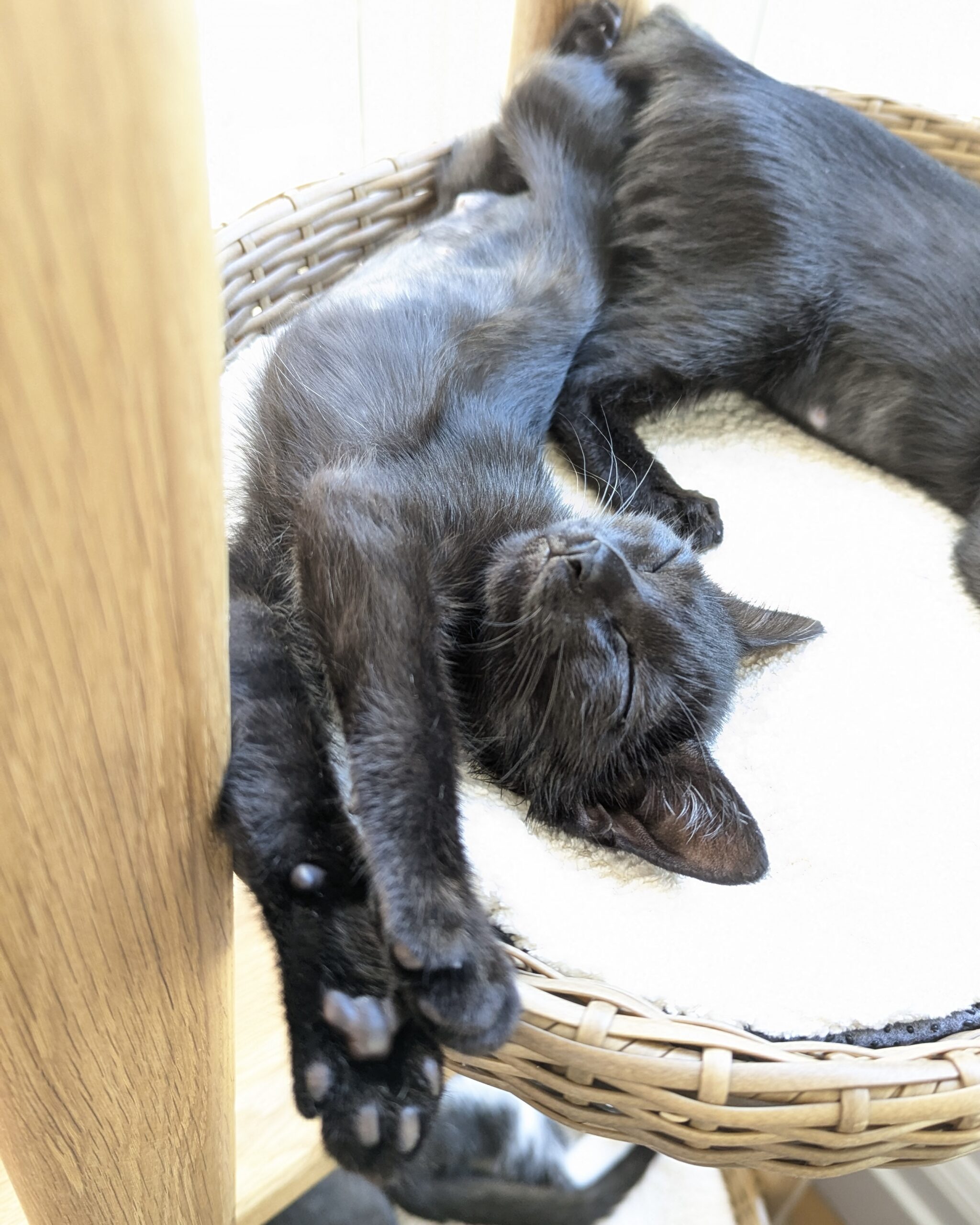 Young kittens must go home in pairs, or to a home with another cat. Infrequently we will make exceptions.