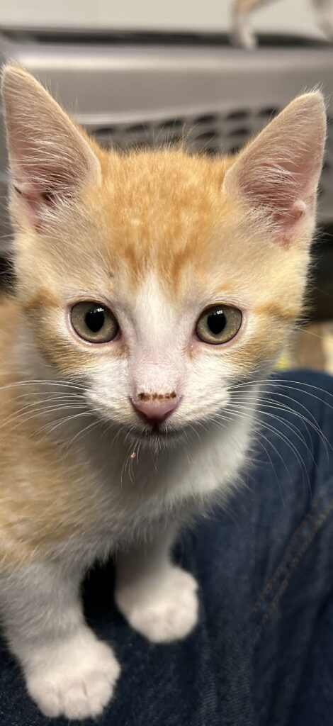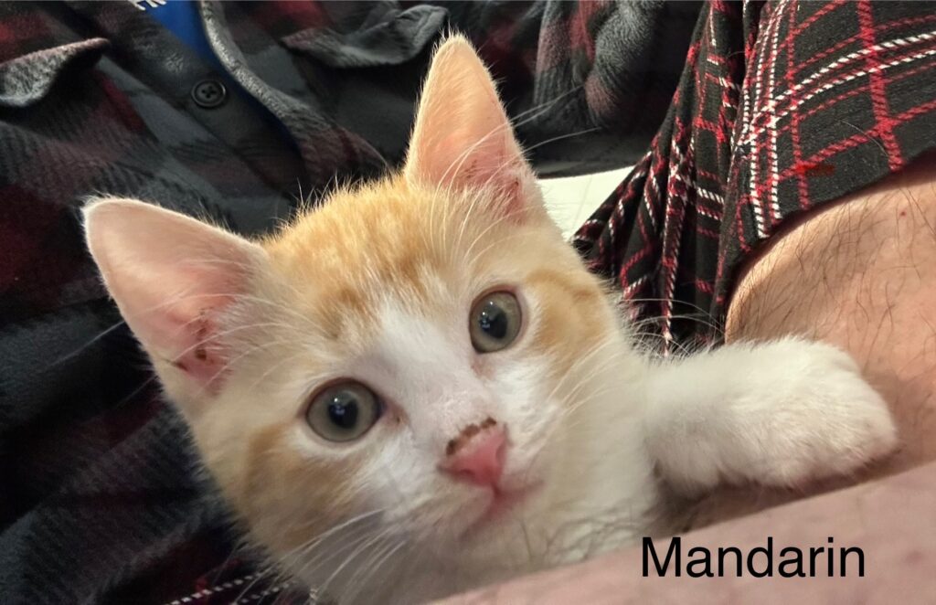 Mandarin is a handsome cream and beige kitten who is looking for a home. He is frisky, playful, and affectionate. Offer him a spot on your lap, rub his belly, and he’ll purr up a storm. Dig out the wand toy, and he’s ready to play. Mandarin likes to play with his brother Kumquat and loves toys that he can bat around.