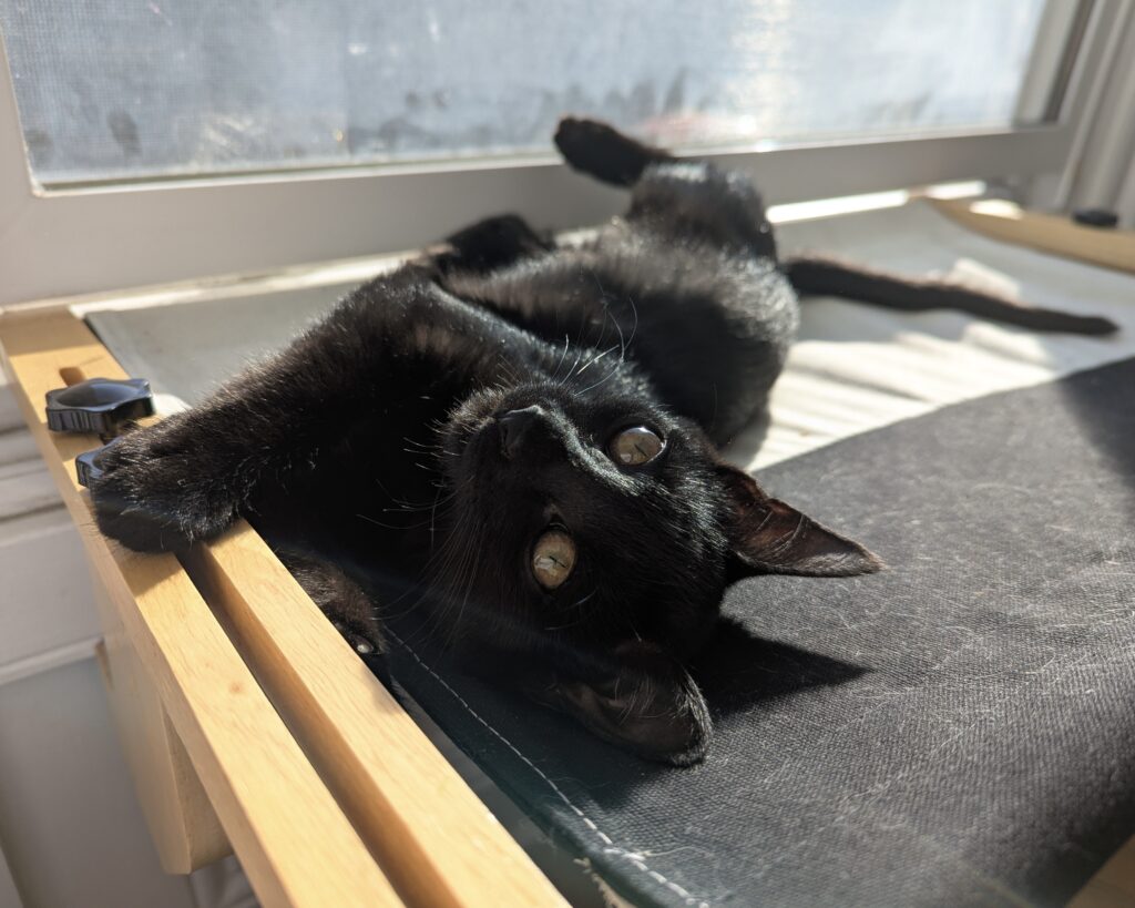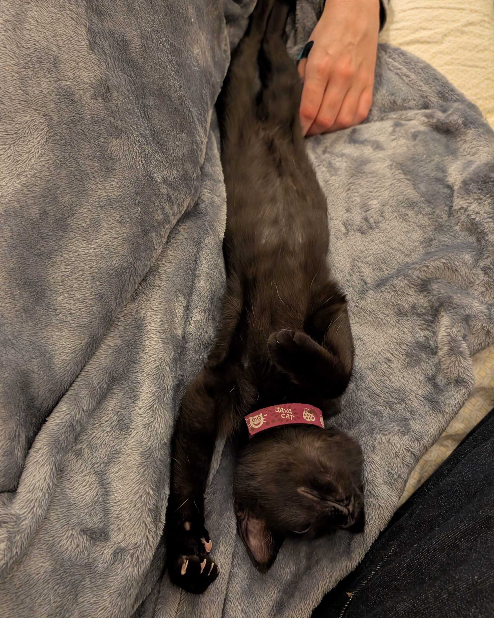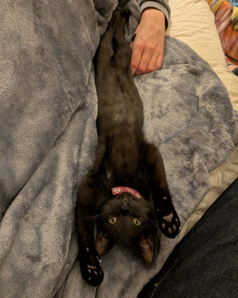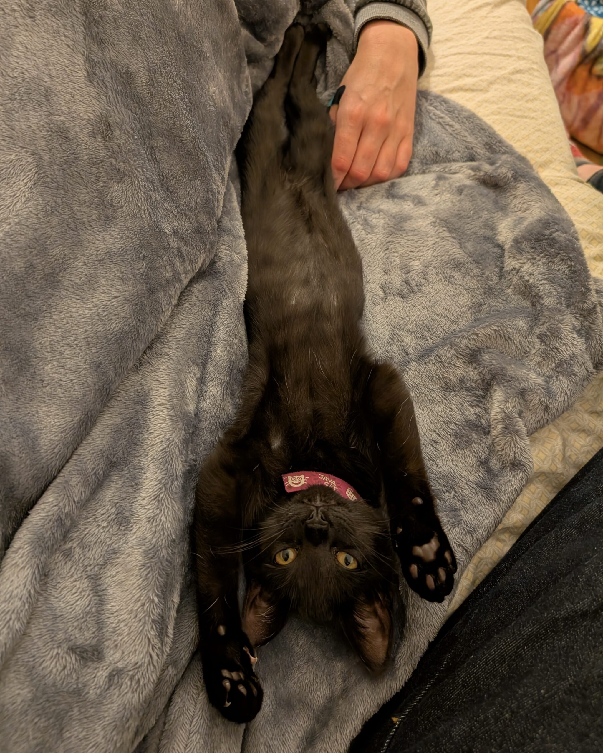 When she’s finished playing, she loves nothing more than stretching out next to her trusted person, making herself long and cozy alongside them. If you’re lucky, you may even hear a soft snore!