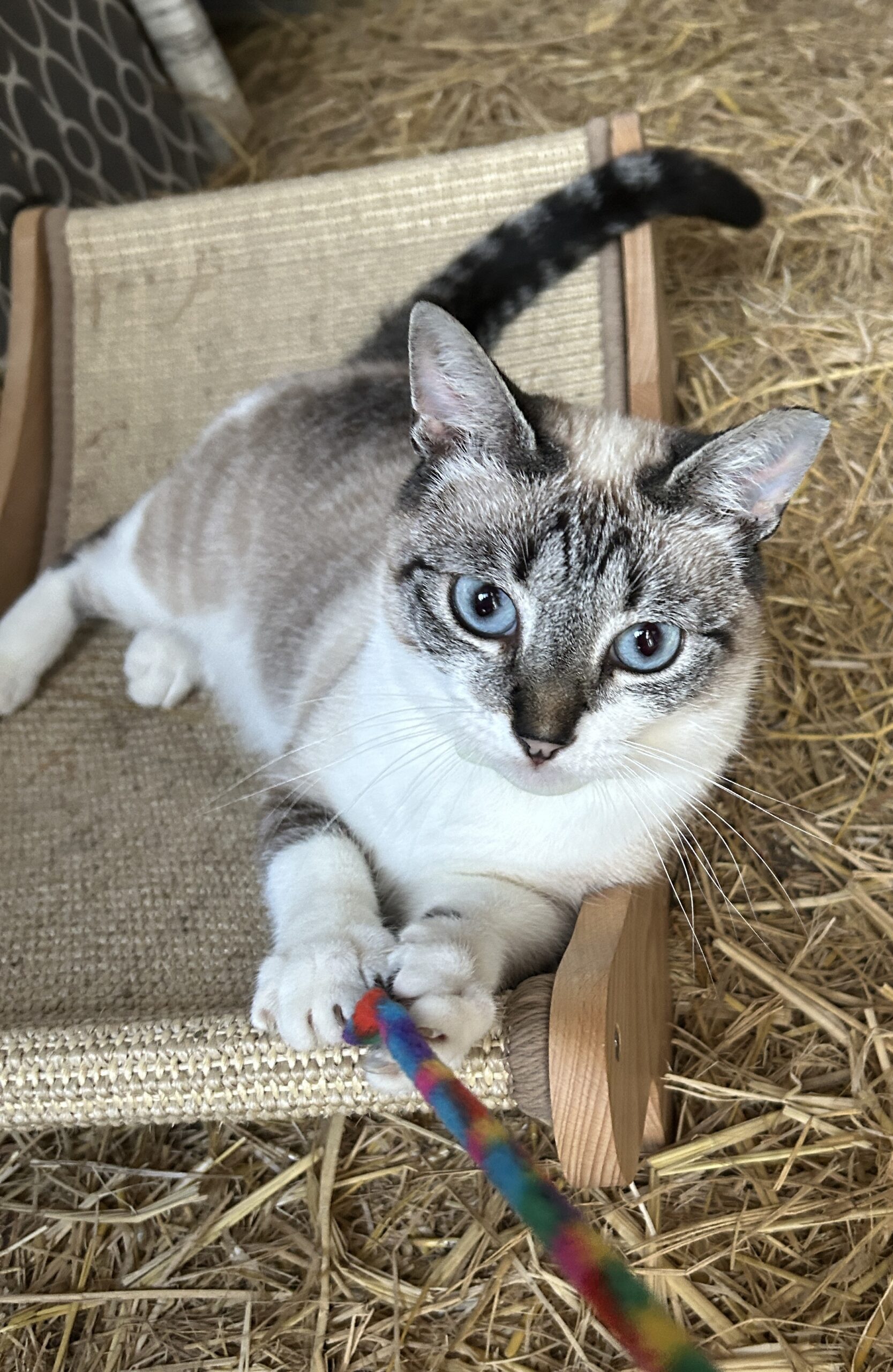 When I’m not enjoying a good grooming, I love to play! I’ll chase that ribbon on a stick with absolute passion. I also enjoy the simple things, like chilling out and soaking up the sunshine from the very top of a cat tree.