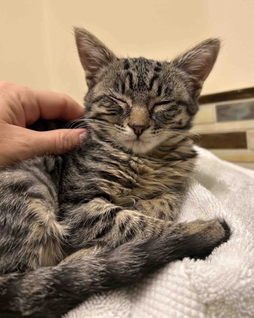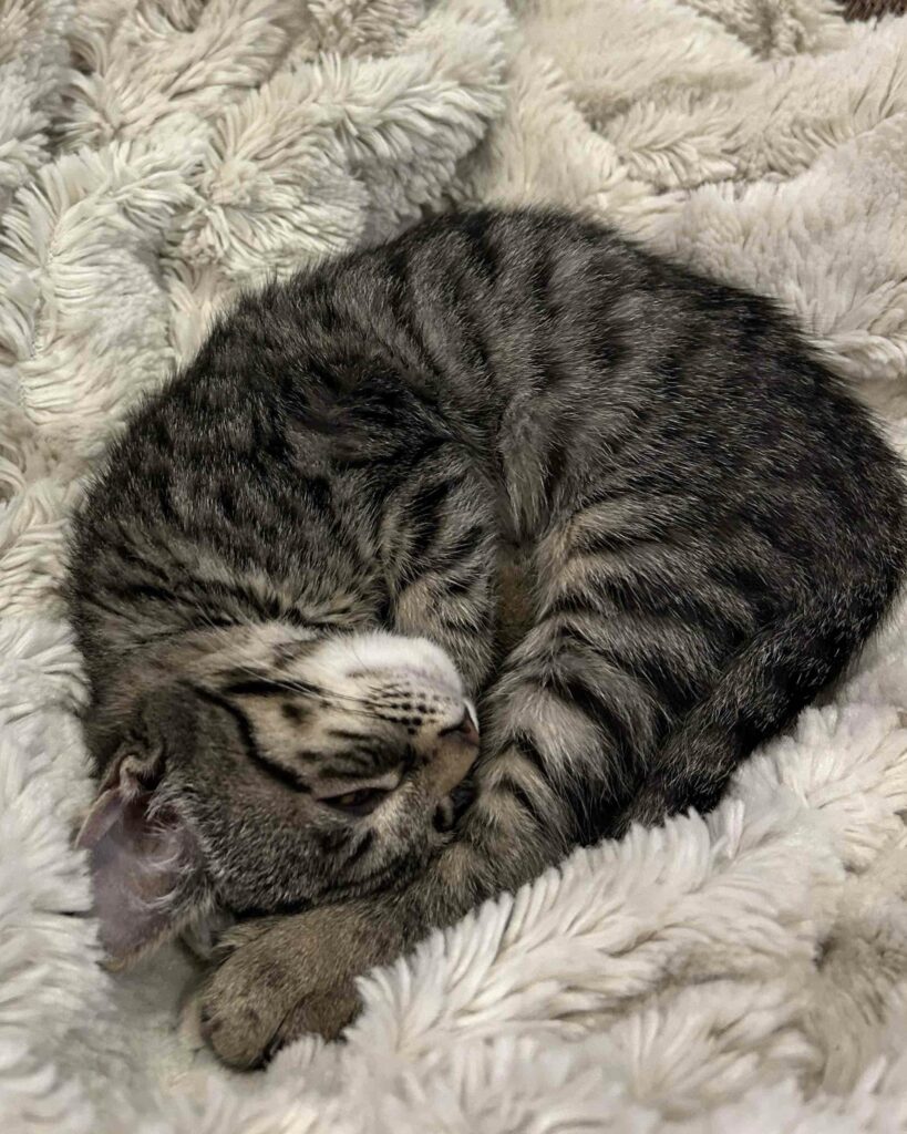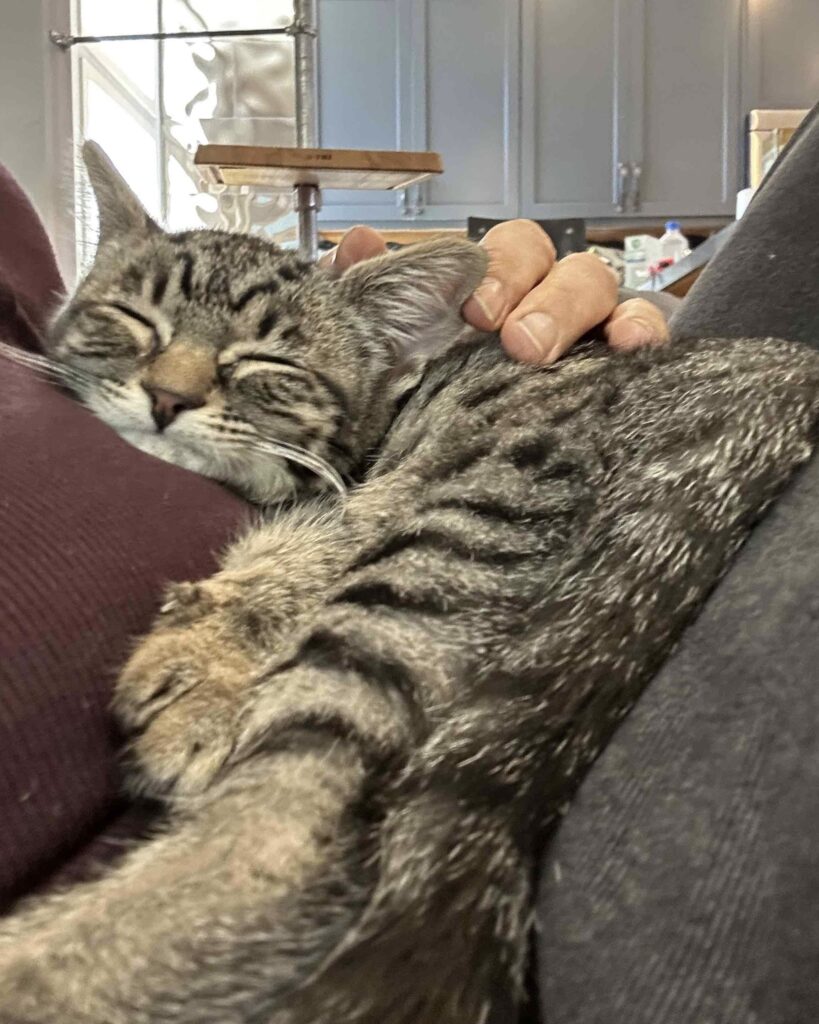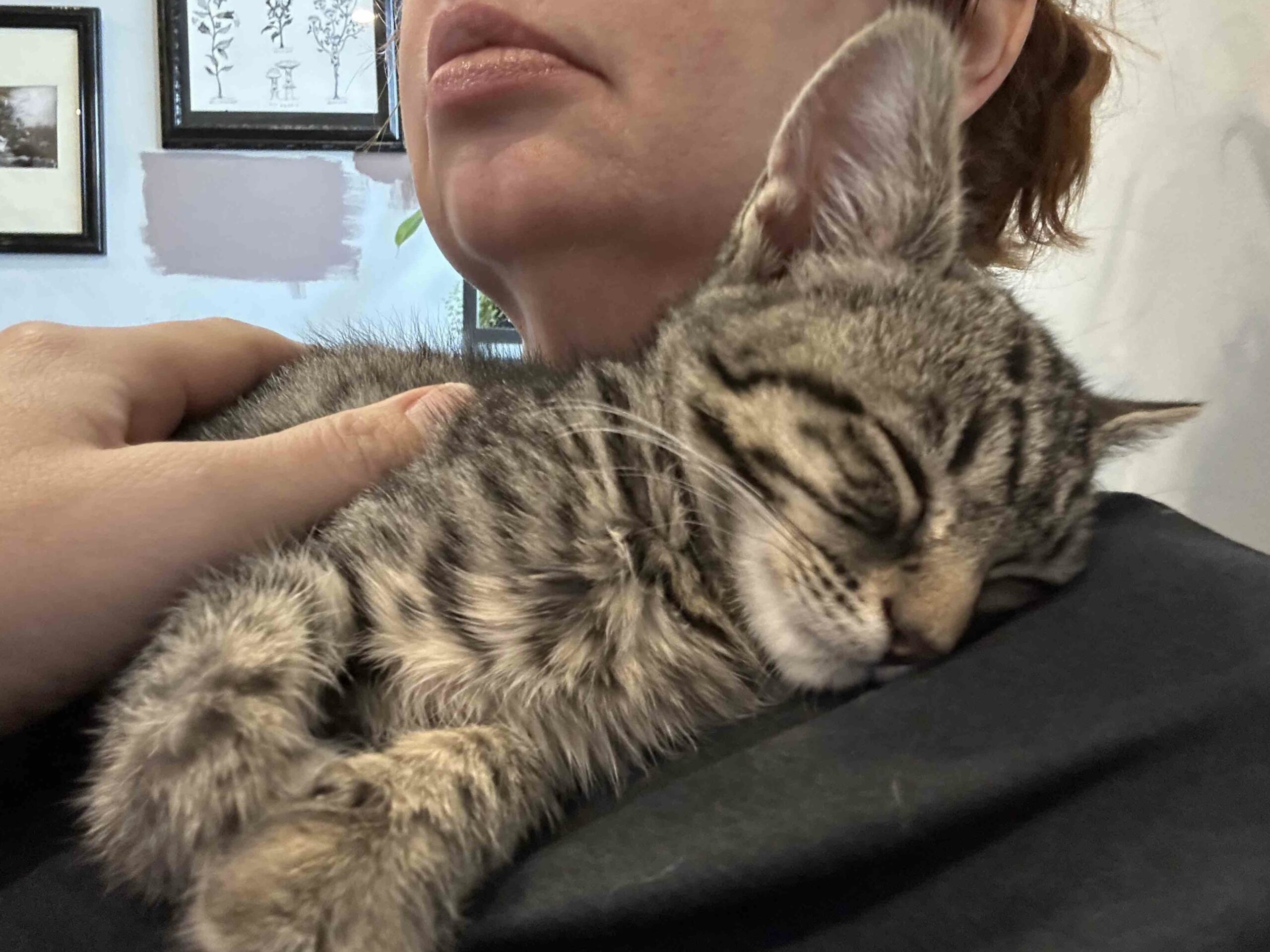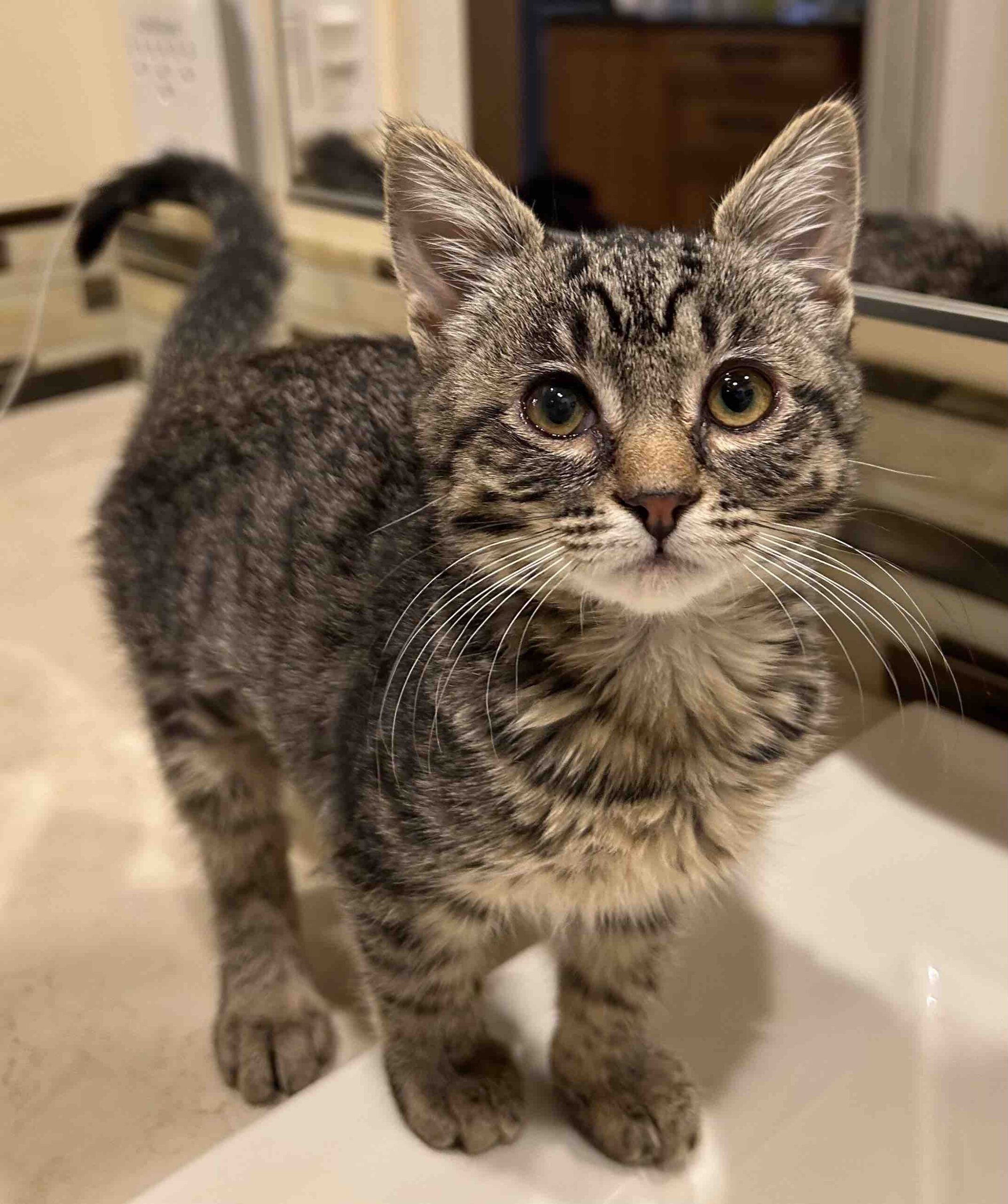 Iris is a small grey tabby who is super friendly and confident. She is a lap kitty and loves to cuddle at night.