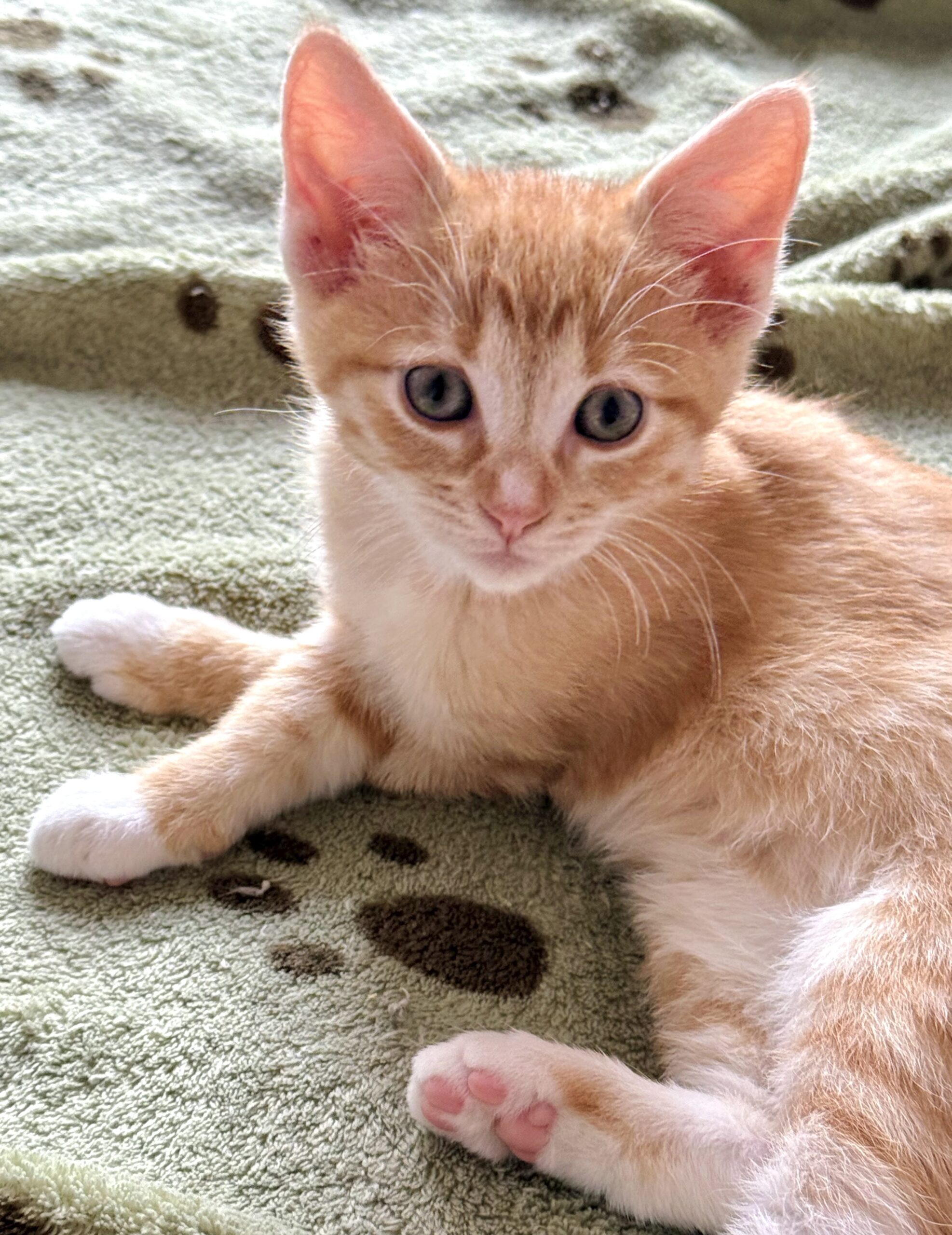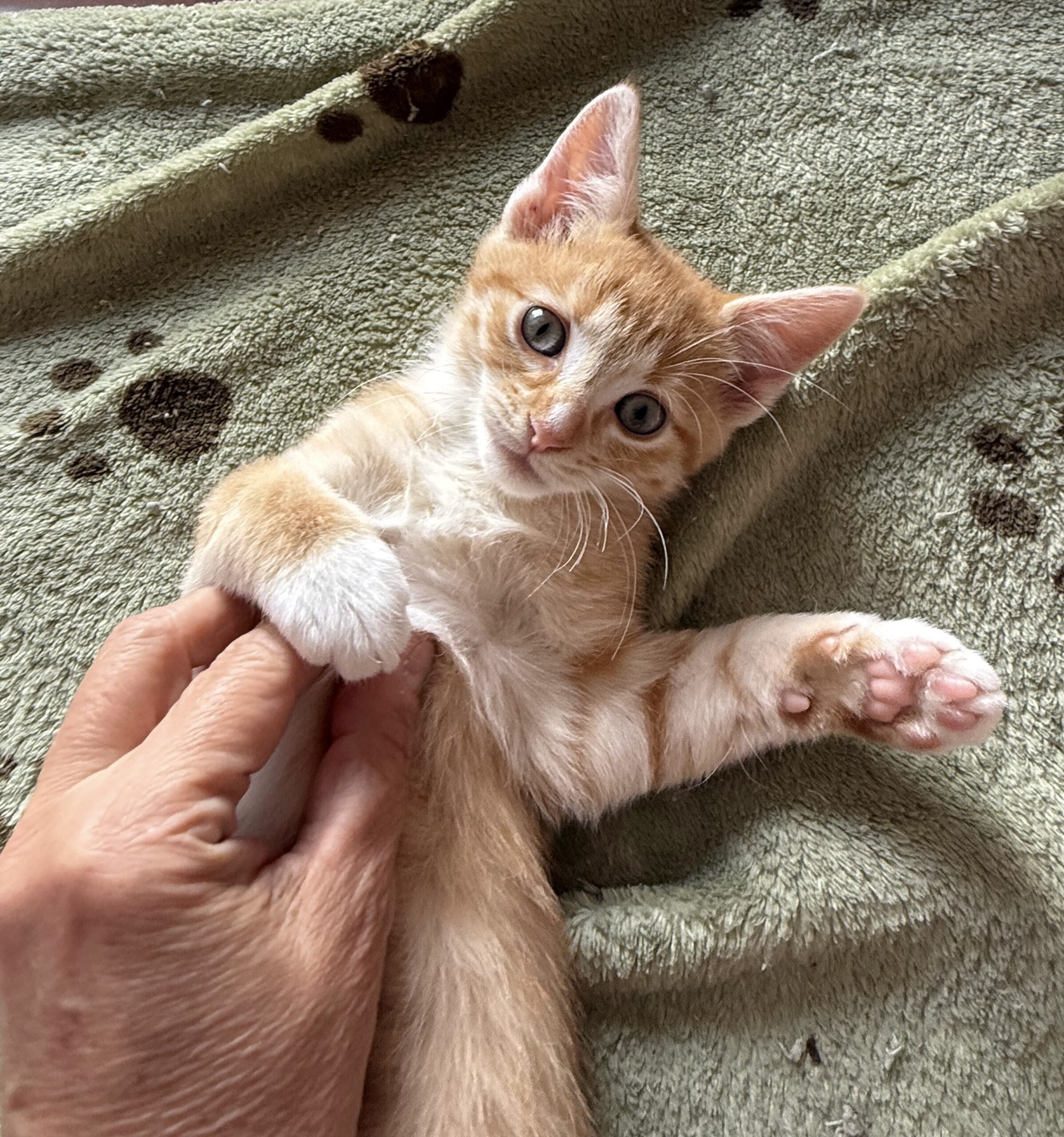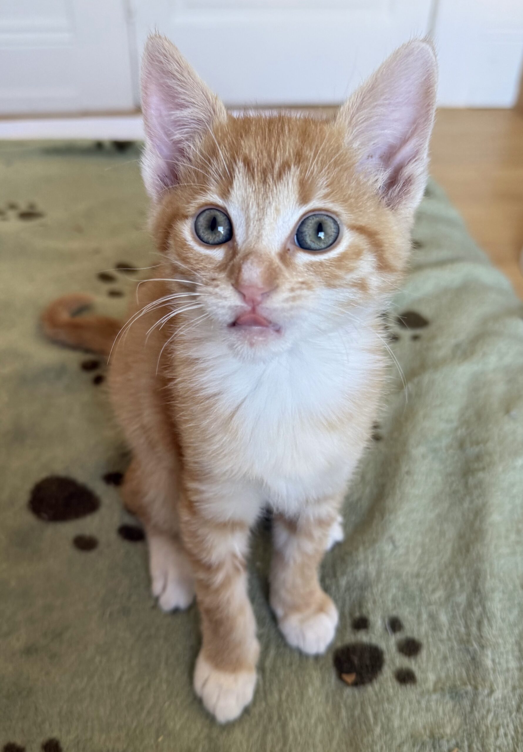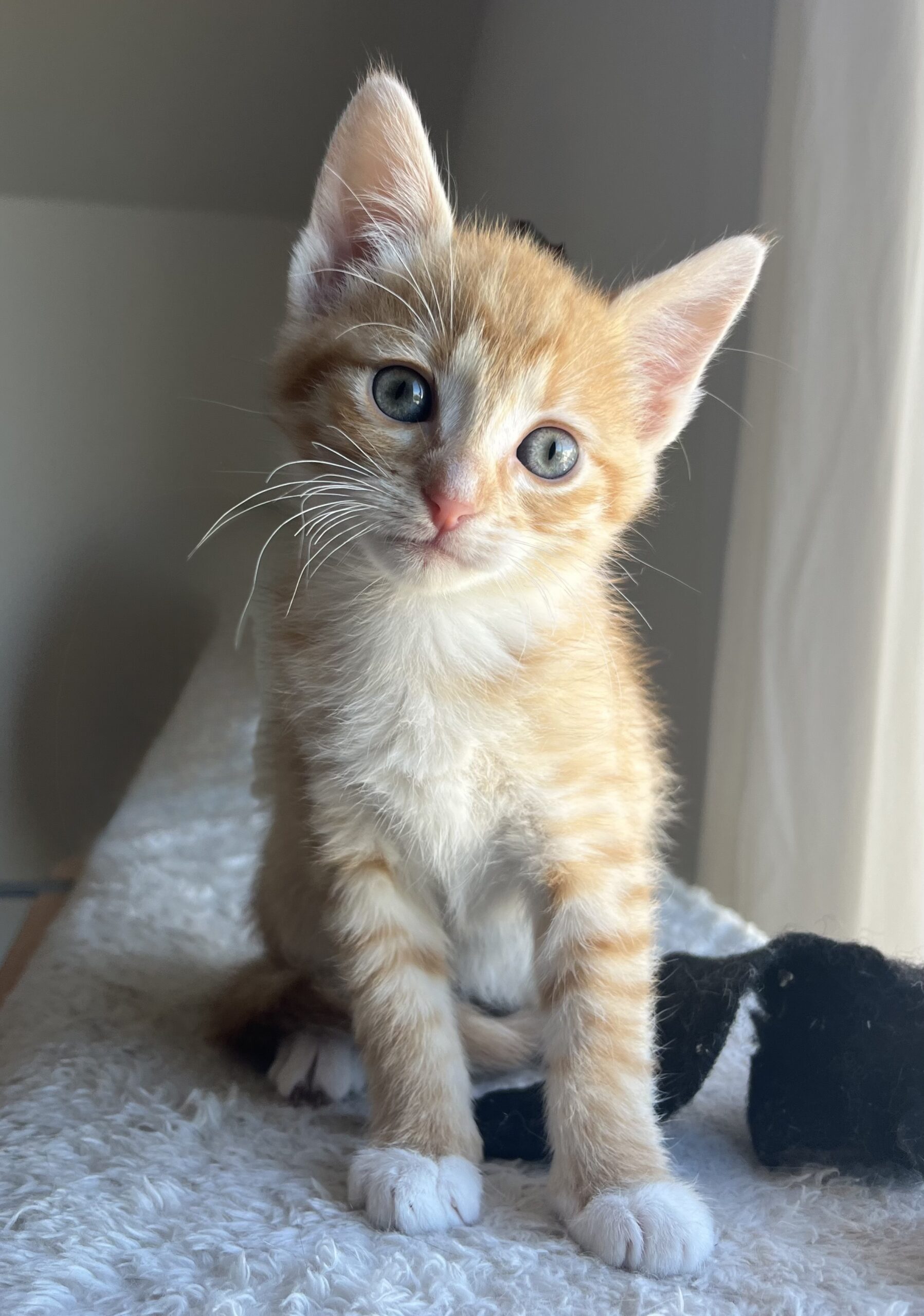 Looking for a cat who’s as full of personality as he is full of love? Meet Lexington, a handsome orange tabby with wild, tiger-like stripes and the sweetest pink nose you’ve ever seen! His white belly and feet make him look like he’s always dressed for a fancy occasion — but don’t be fooled, this boy loves to play hard and cuddle harder.