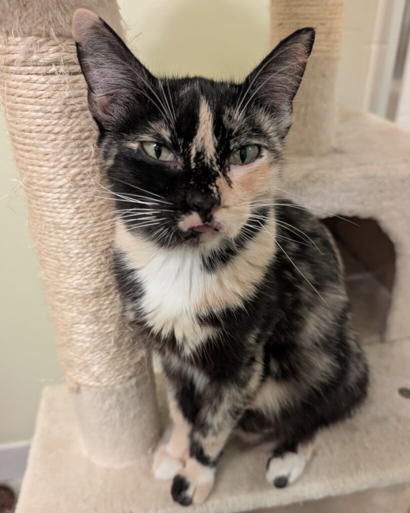 She has a calm, loving nature and would thrive in a home where she can be included in daily life and showered with the affection she gives so freely. She is great with kids and isn’t startled easily. Her foster says she is one of the sweetest cats she’s ever met.