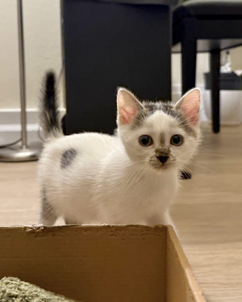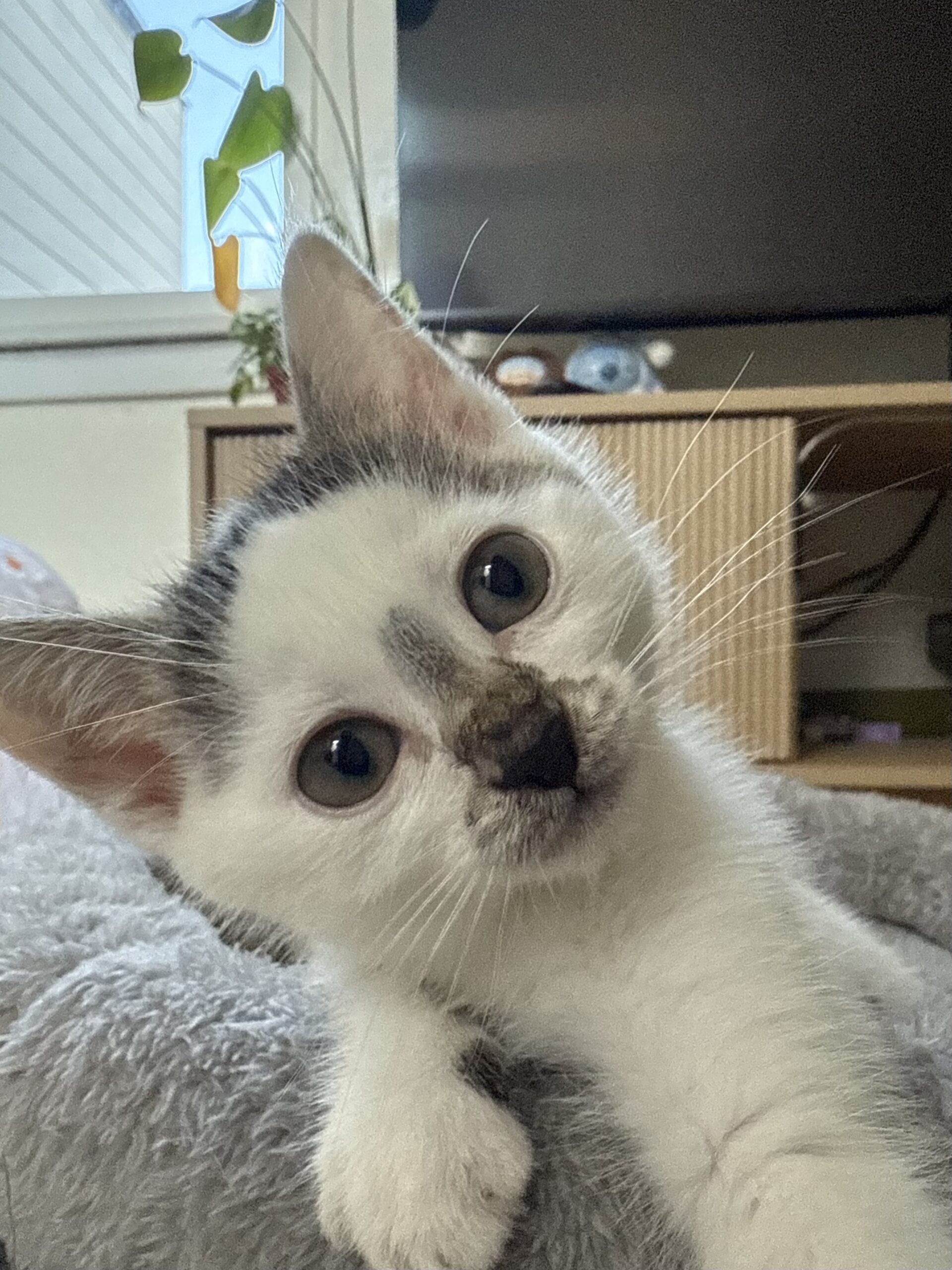 Tofu is very affectionate and loves being with you as you go about your day. He’s gentle with his claws and likes perching on your shoulder. He gets along with cats, is still unsure about dogs, and would probably do well with children.