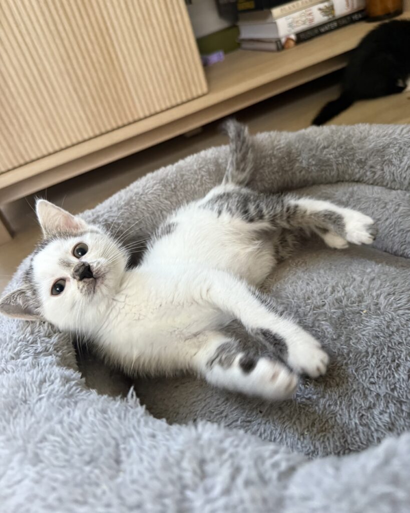 Young kittens must go home in pairs, or to a home with another cat. Infrequently we will make exceptions.