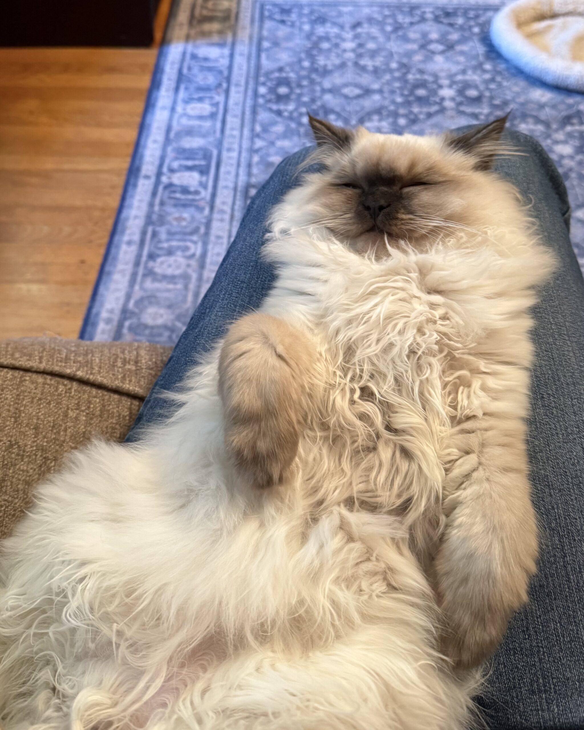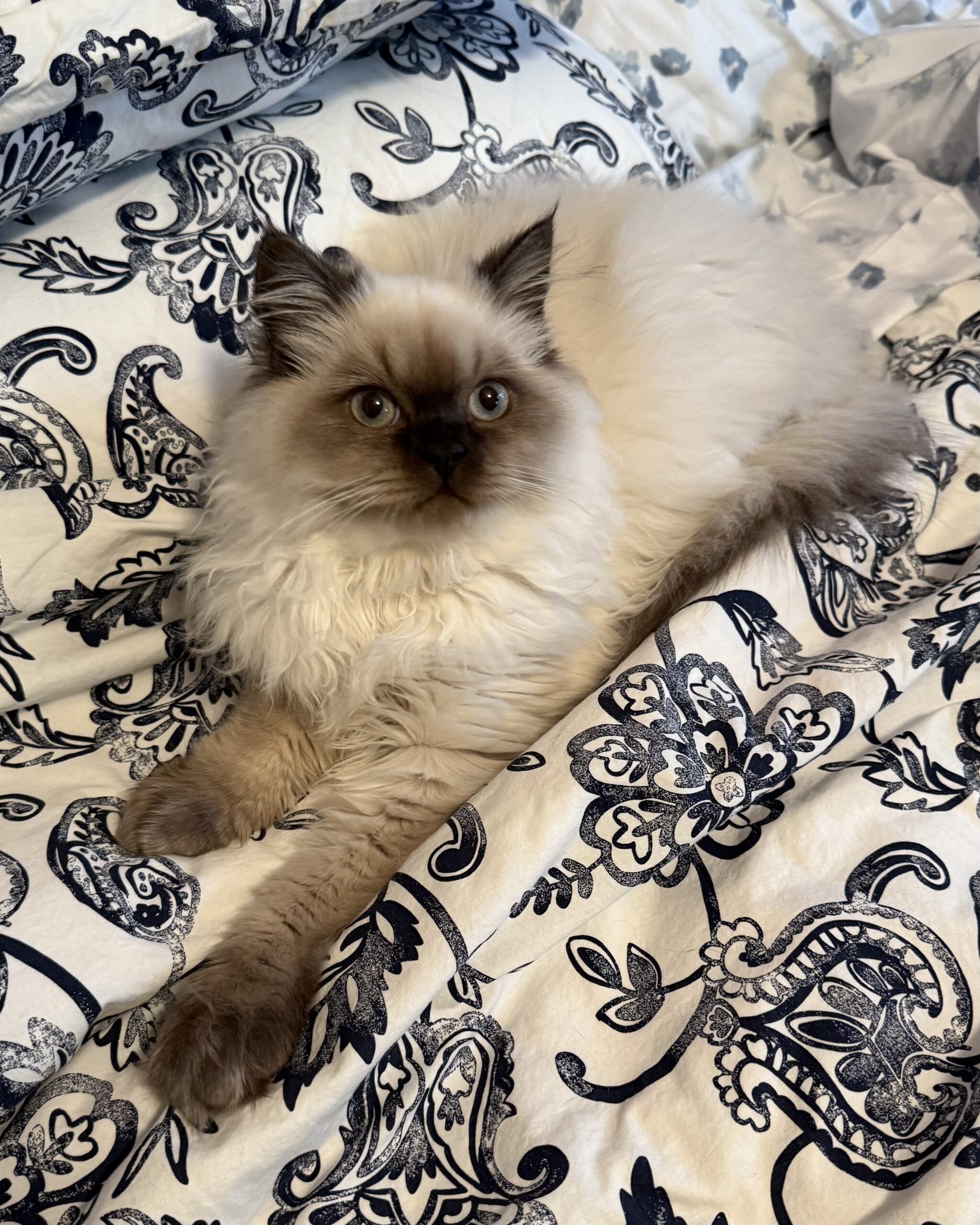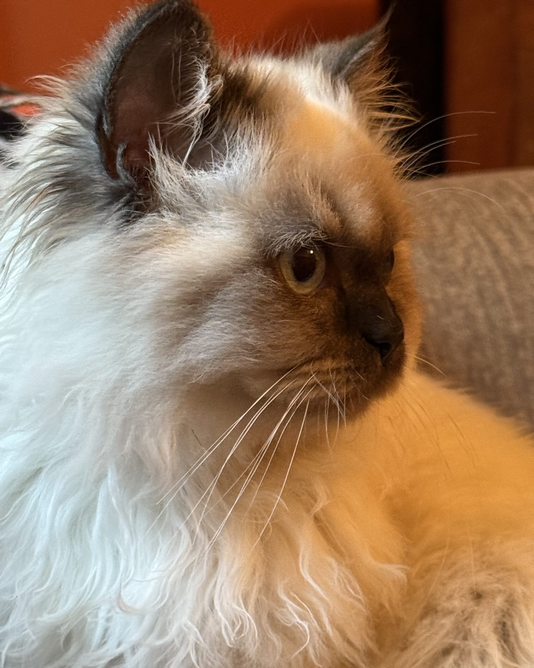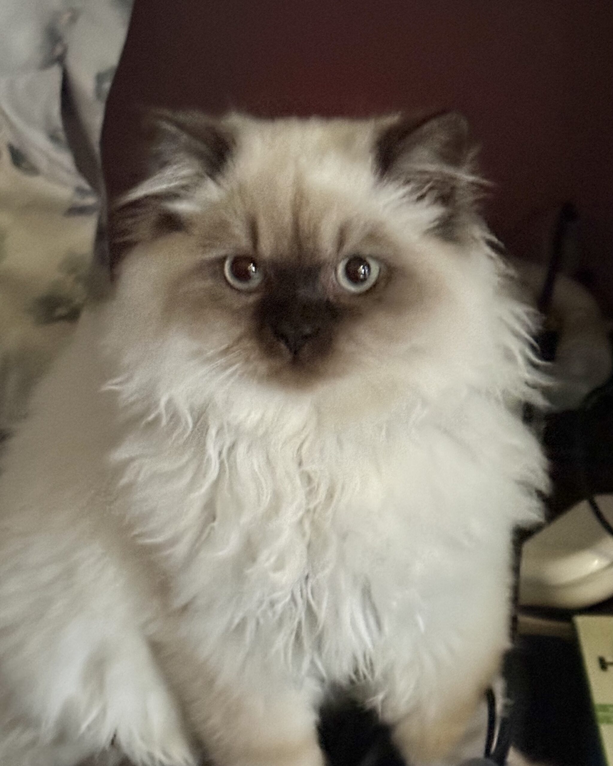 Jake is a wonderful, soft 6-month-old cat who loves cuddles. He is a seal point ragdoll mix with beautiful silky long fur. Jake is affectionate and likes to sleep on the bed with his person. But he also has a playful side and is a big fan of wand toys.
