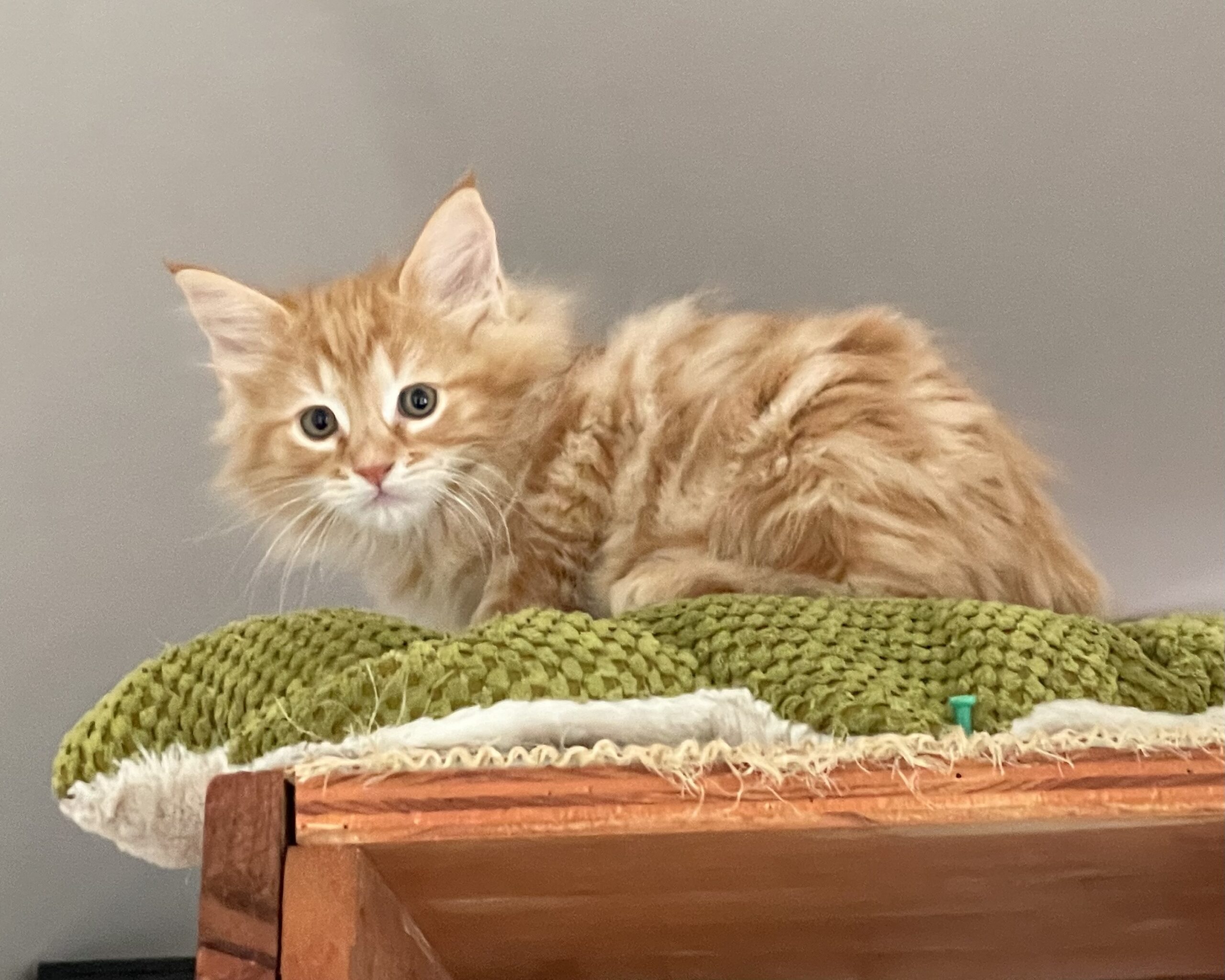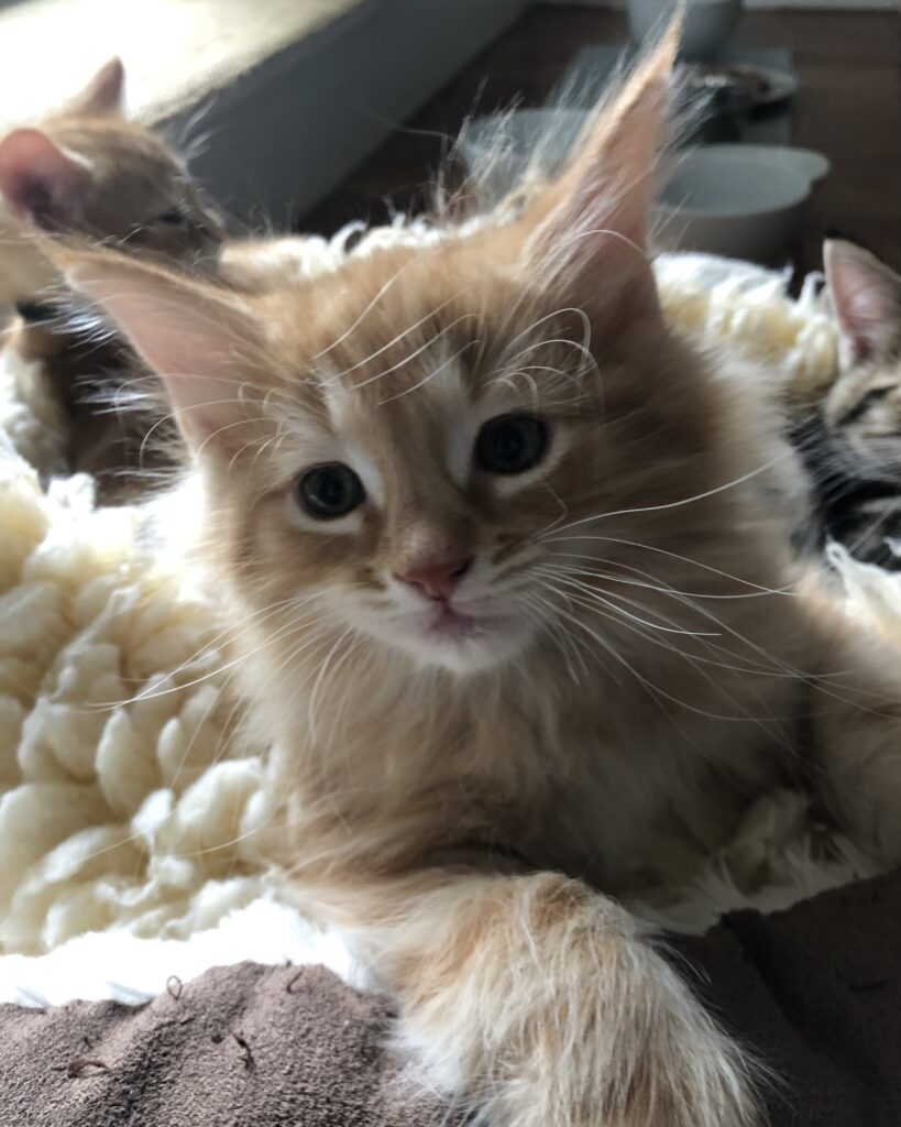 Pumpkin looks like a very cute fluffy little teddy bear. He is a playful, curious boy who enjoys chasing his siblings or being chased by them. Pumpkin likes challenges: in wrestling games with his buddies, rolling a ball, or jumping and leaping to catch whatever toy is currently his favorite.