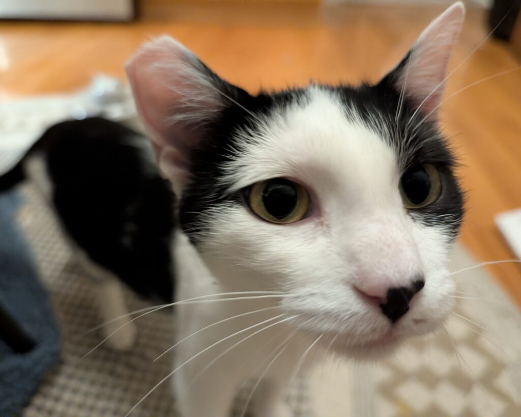 Incredibly gentle, Mama Roo has never hissed, scratched, or bit – even during the stressful adjustment periods. She will need some space to decompress in your home, but as a former street cat she knows the value of food, and will soon come to trust whoever feeds her and spends quiet, low-pressure time with her.