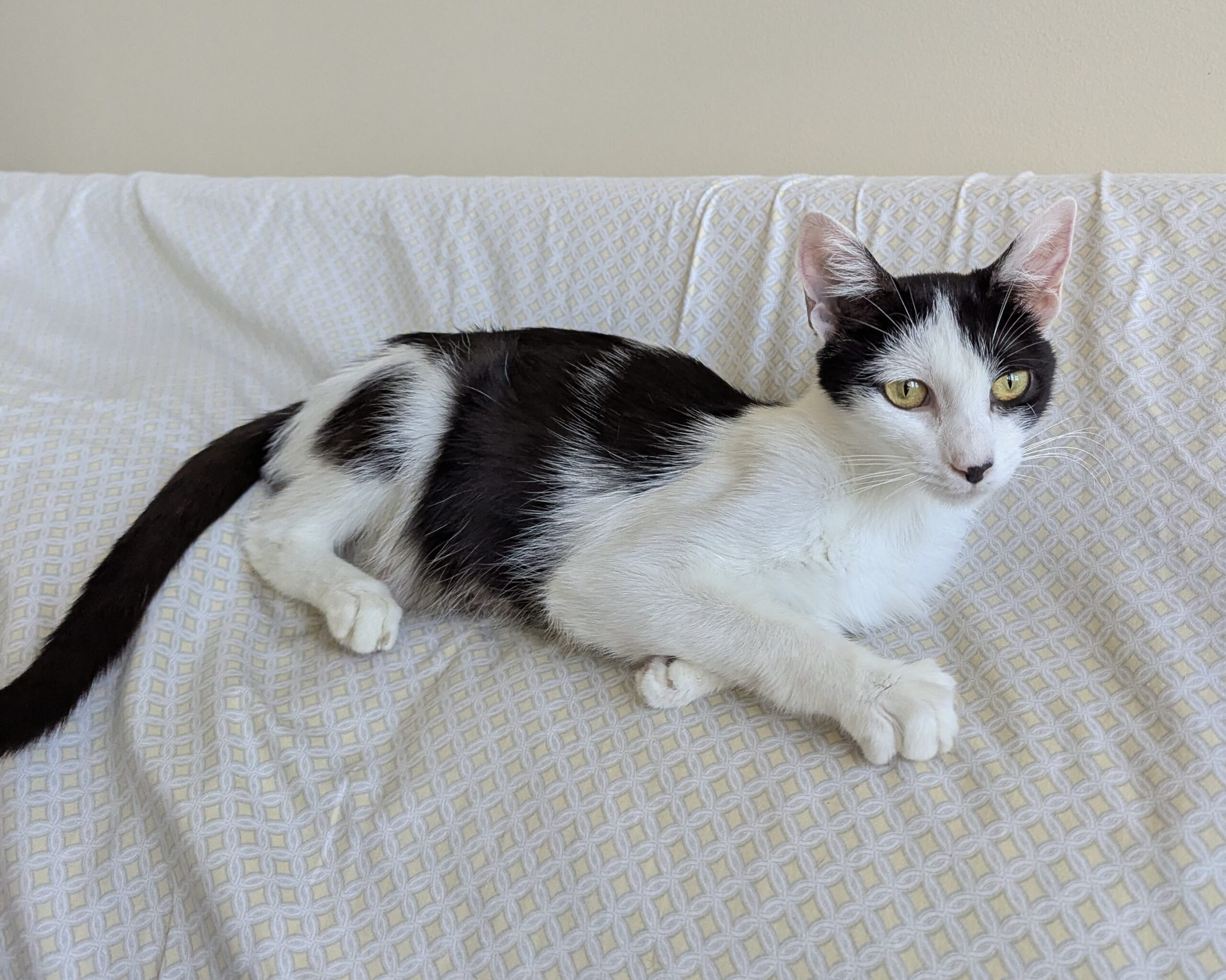 Mama Roo has had a lot of upheaval in her life lately. She was found a day away from giving birth, then had to raise five rambunctious kittens while getting used to this whole “living indoors” situation. She’s very much enjoying her transition into being an indoor cat, though, and especially since her kittens were adopted she’s really come into her own. She’s looking for a soft place to land with a person (or two!) to call her very own.