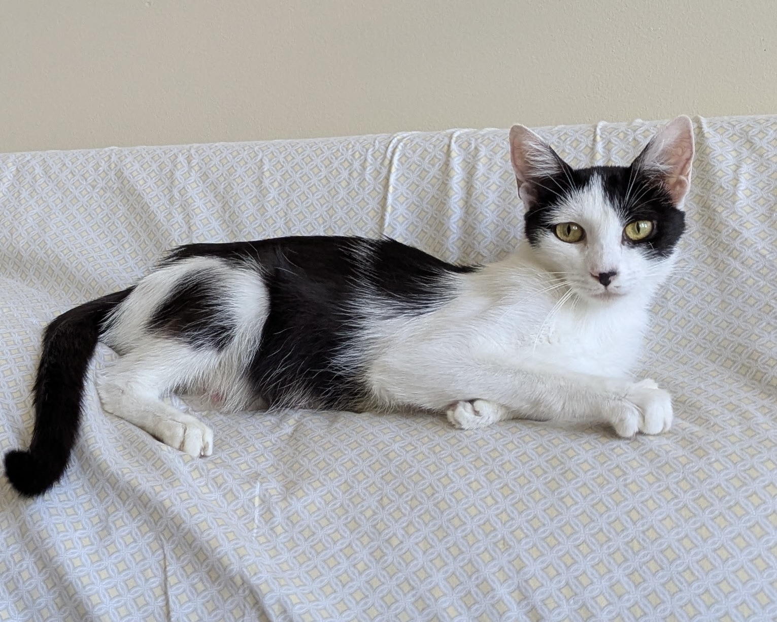 Incredibly gentle, Mama Roo has never hissed, scratched, or bit – even during the stressful adjustment periods. She will need some space to decompress in your home, but as a former street cat she knows the value of food, and will soon come to trust whoever feeds her and spends quiet, low-pressure time with her.