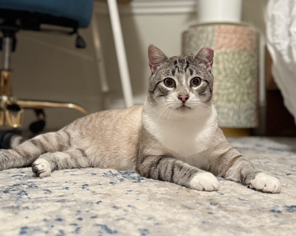 You’ll often find him rolling on his back for belly rubs, softly purring, or gently meowing to say hello. He’s a wonderful listener and observer – his foster mom swears he understands every word she says. When it’s time to rest, Tommy loves to nap on the hardwood floor or his foster mom’s desk, watching the world go by through the window as he people-watches.