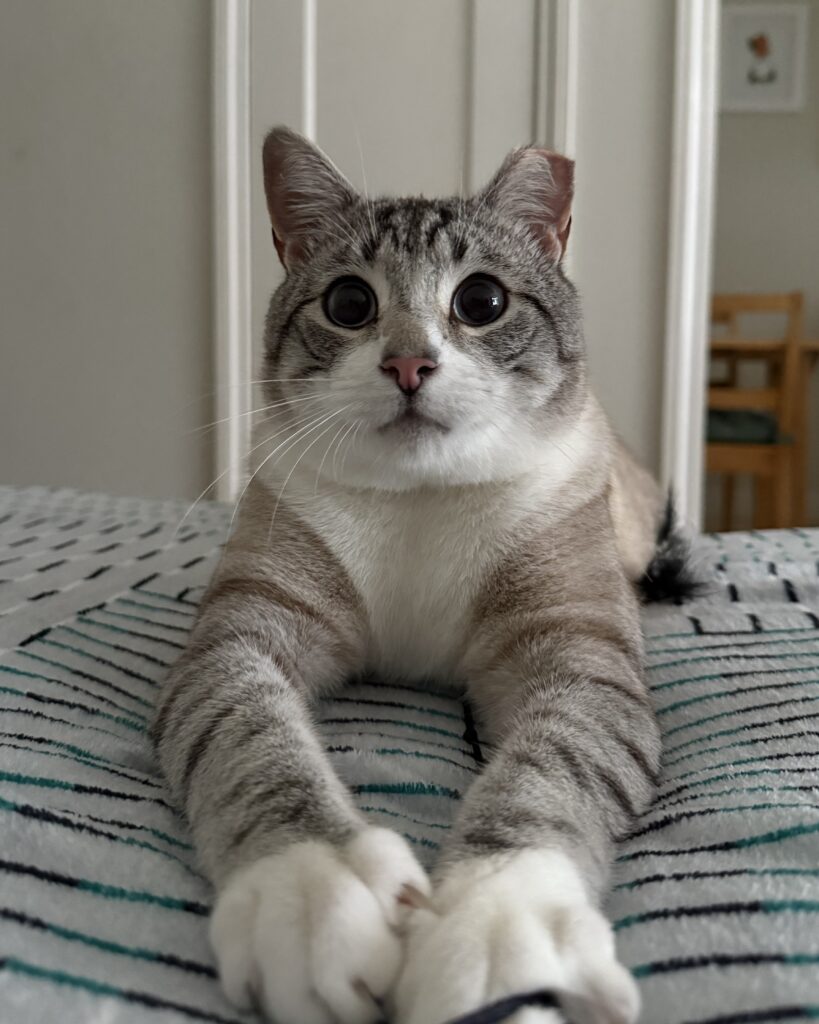Tommy is an incredibly easygoing and affectionate boy who adapts quickly to new environments. Whether he’s meeting new people (he loves strangers!) or exploring a new space, he does it all with calm curiosity and confidence. He’s not overly needy, but he adores interacting with his humans, especially when it involves interactive toys that move or feathers to chase!