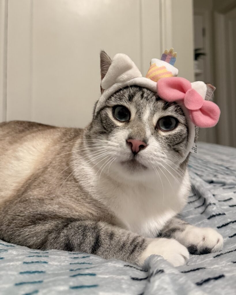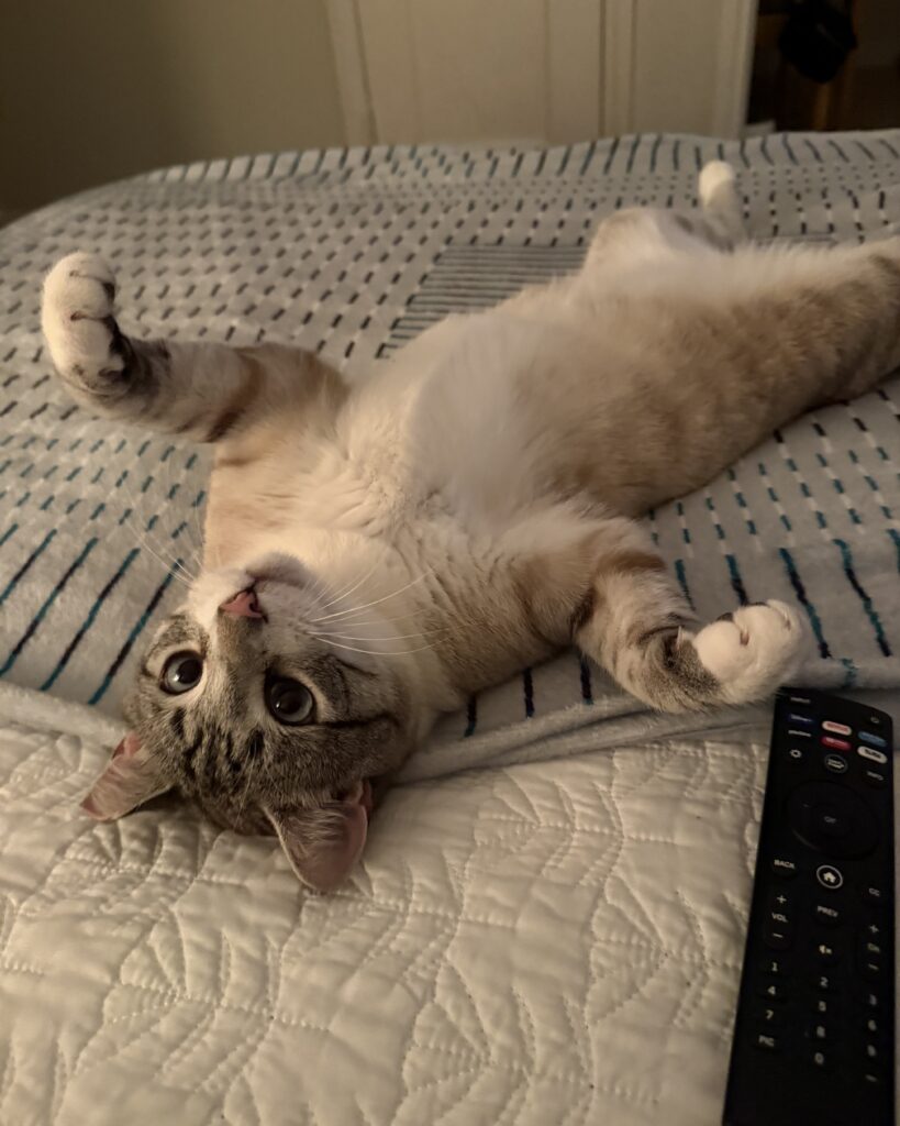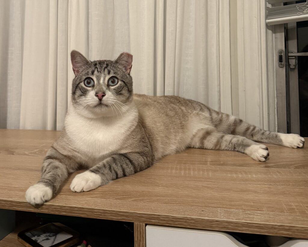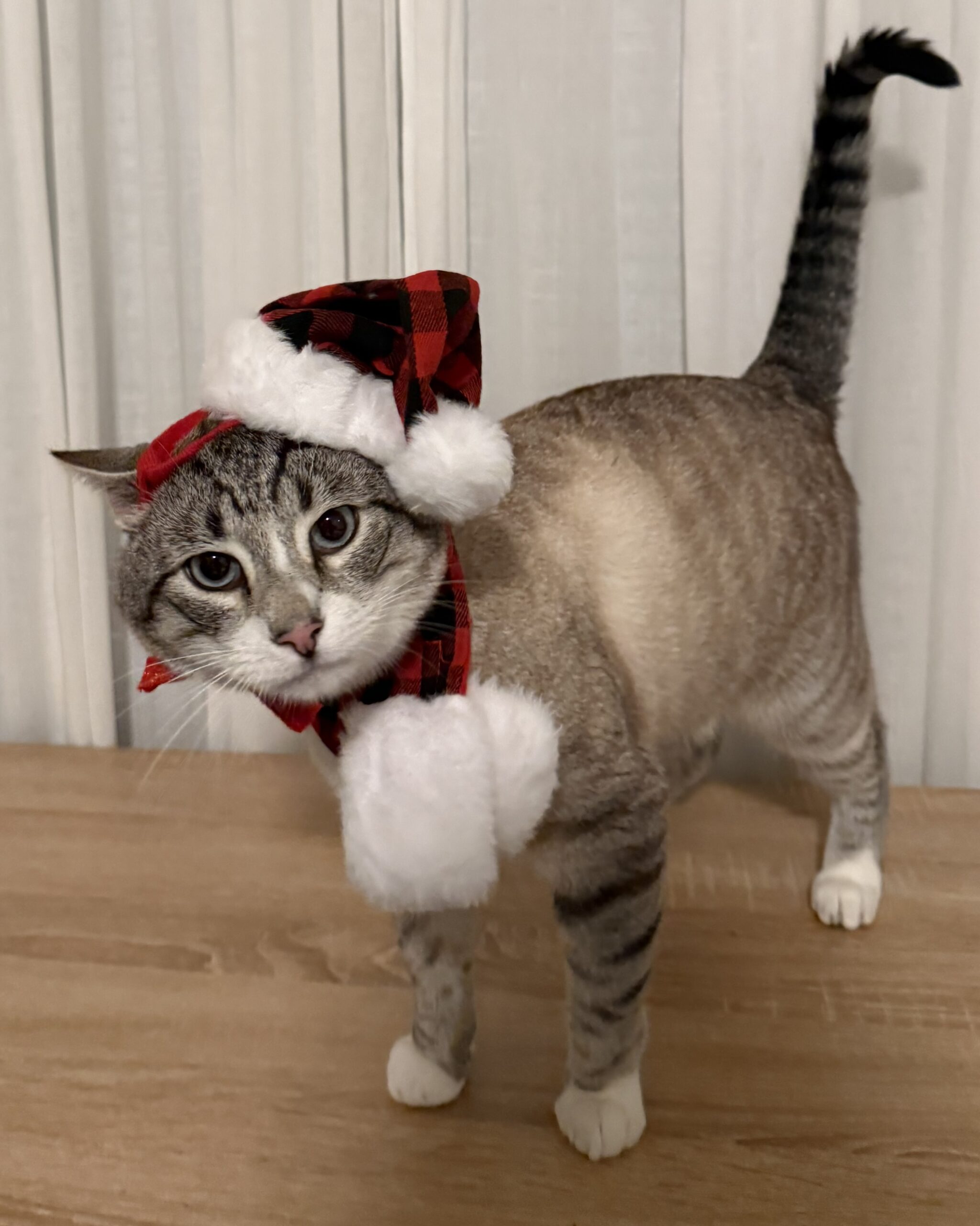 If you’ve ever wished for a cat who’s equal parts social butterfly, gentle soul, and playful explorer, Tom Nook is your guy! This handsome 2-year-old Siamese mix got his name from the beloved Animal Crossing raccoon – his striped back and tail make the resemblance uncanny. But unlike his namesake, Tommy won’t charge you rent—he’ll just ask for a few feather toys and a cozy lap now and then.