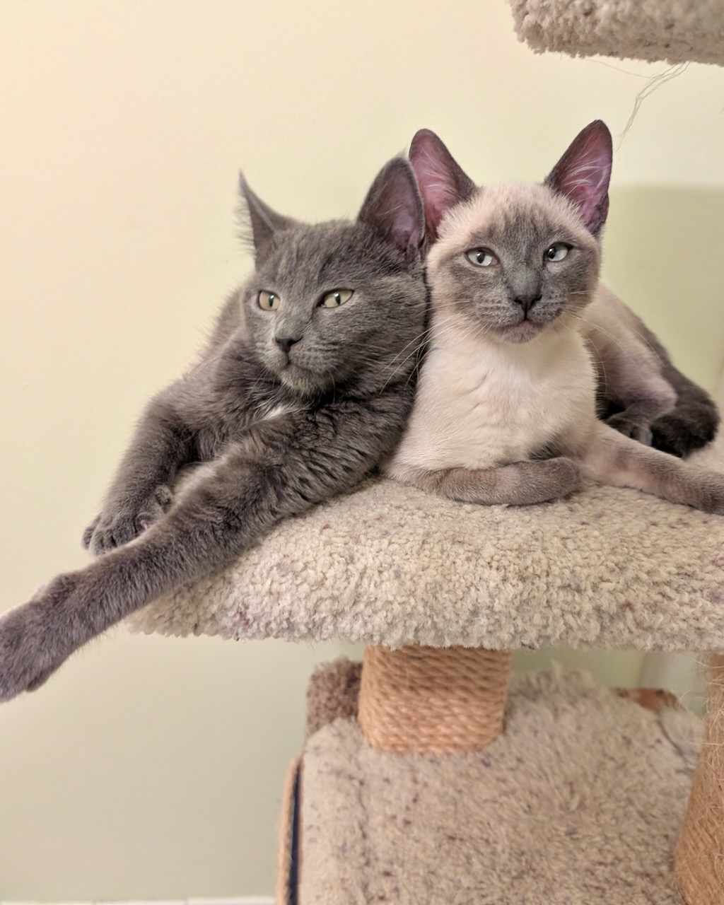 Young kittens must go home in pairs, or to a home with another cat. Infrequently we will make exceptions.