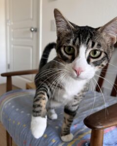 Meet Skeeter and Dinah – two brave souls who decided the “feral life” was overrated and the “couch life” is where it’s at. Skeeter is the resident social butterfly! He’s the first to greet you, a professional at demanding cheek/chin scritches, and a world-class playmate. If you have a wand toy, you have a best friend.