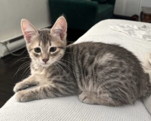 Clam looks like her mother’s mini-me! She is all grey tabby and all fun! She is a curious, cuddly kitten who, like her sister Shrimp, has a great balance of play and rest in her daily routine. She loves a good cuddle in your arms or laying down. She also loves to explore her foster’s apartment and…