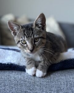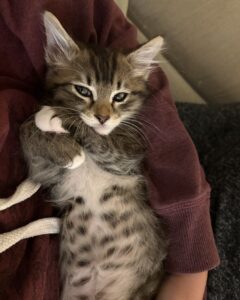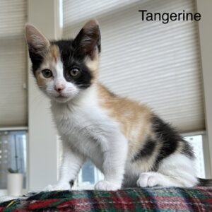 Tangerine is a beautiful calico who purrs up a storm. At home in your ‘Criss Cross Applesauce’, or sitting by your side offering cat GPT suggestions. Equally comfortable chasing a wand toy or just chillin’. Our kittens are spayed or neutered, tested for FeLV/FIV, FVRCP vaccinated, dewormed, and microchipped. All of our kittens must go…